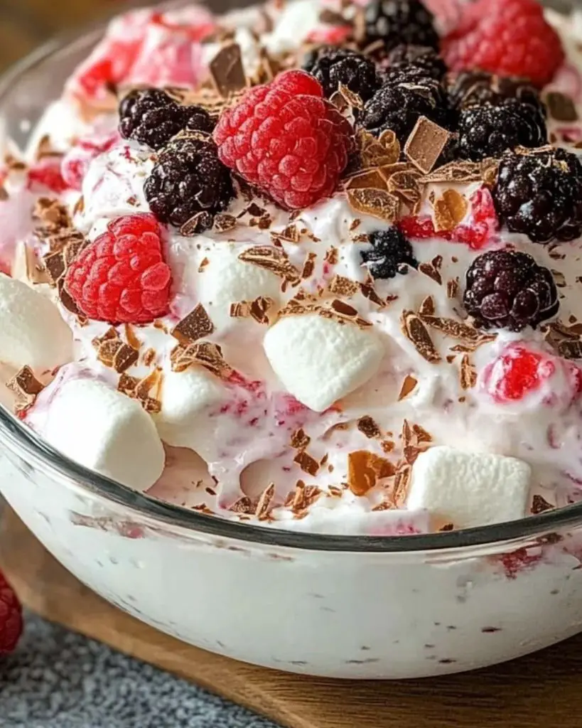 Ambrosia is an easy no-bake dessert made with whipped cream, yoghurt, marshmallows, berries, and chocolate. This simple and creamy fruit salad is perfect for parties, potlucks, or holiday gatherings. Ready in minutes and best served chilled, it’s a family favorite that’s ideal for make-ahead entertaining and special occasions.
