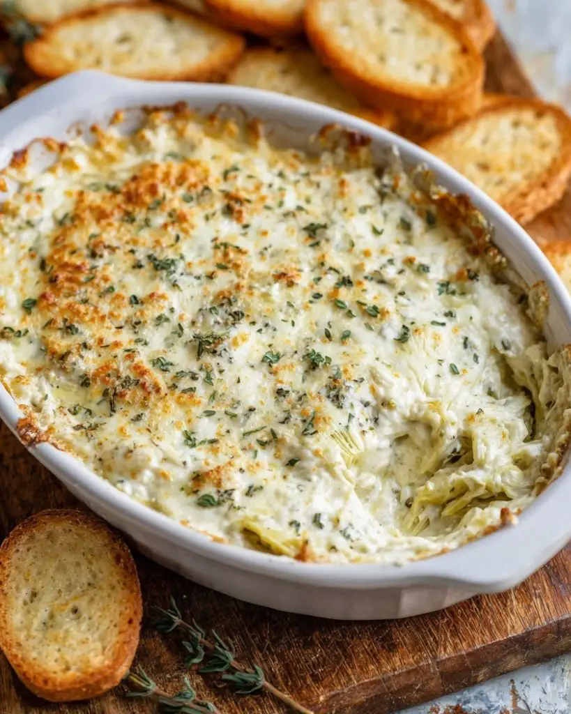 This artichoke dip is creamy, cheesy, and full of flavor. It’s quick to prepare, bakes in just 20 minutes, and is always a crowd favorite—perfect for holidays, game days, or casual get-togethers.