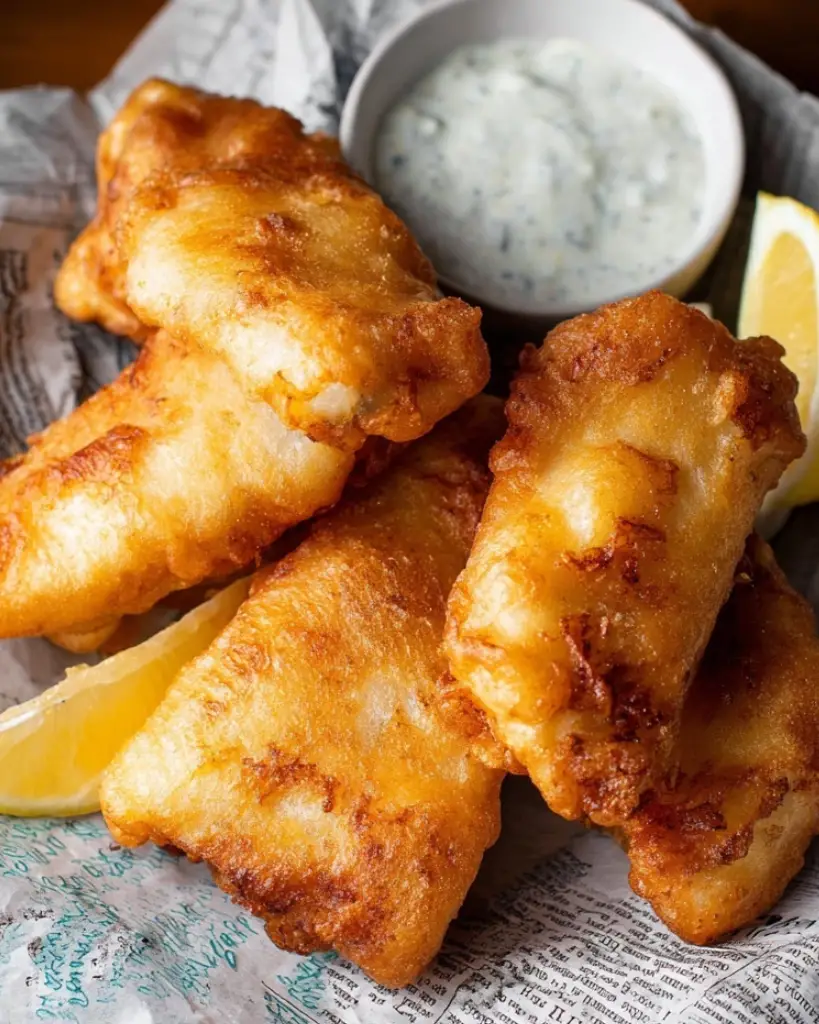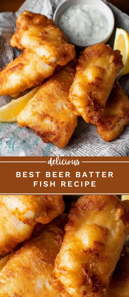 Beer battered fish recipe made with white fish fillets and cold beer for a light, crispy coating. This fried fish recipe creates golden, crunchy fish that stays tender inside, perfect for homemade fish and chips. Easy beer batter using flour, cornstarch, and baking powder, ideal for deep frying cod, haddock, or pollock. Classic pub-style fried fish served hot with lemon, tartar sauce, and malt vinegar for a simple seafood meal.