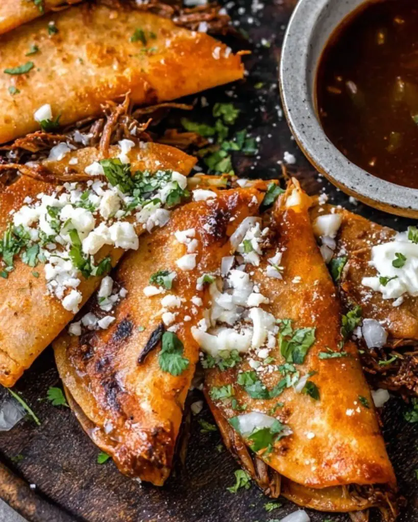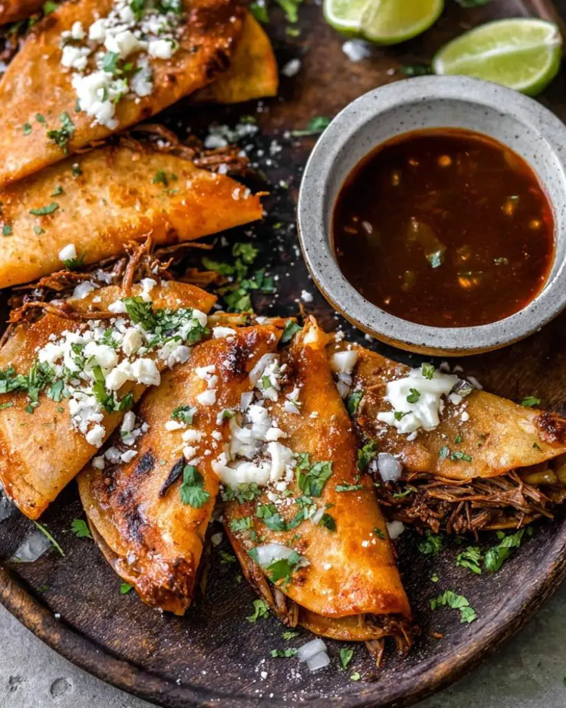 Birria tacos combine tender, flavorful beef with a rich, aromatic sauce and crispy tortillas. Perfect for gatherings or a homemade Mexican feast, these tacos are both hearty and indulgent, with layers of spice and savory depth that will impress any taco lover.