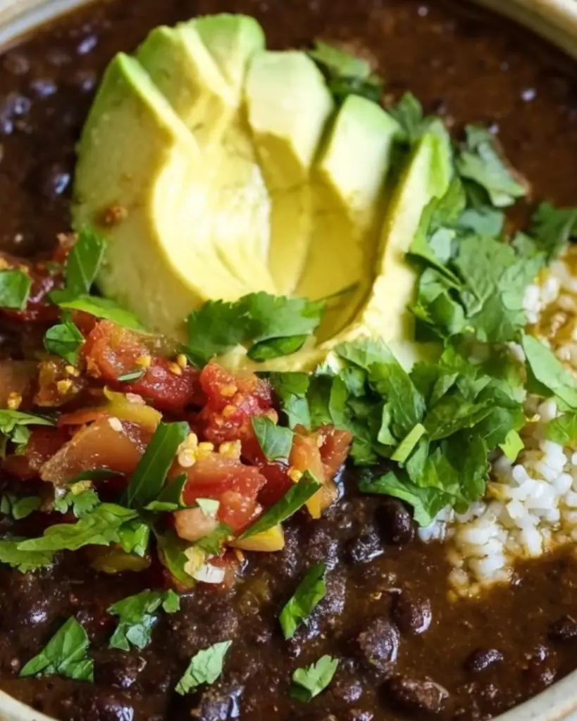 Hearty Black Bean Soup made with seasoned black beans, jalapeños, garlic, and spices. Easy to make, customizable, and perfect for a healthy lunch or dinner. Serve with avocado, cilantro, and tortilla chips for added flavor and texture.