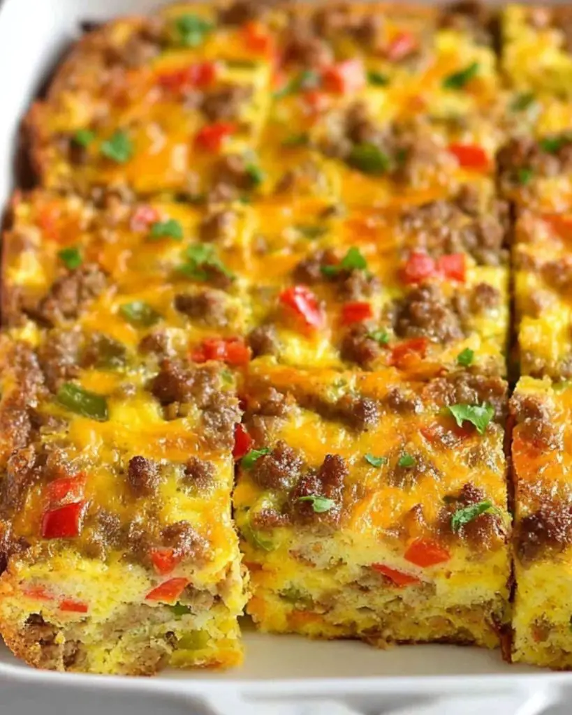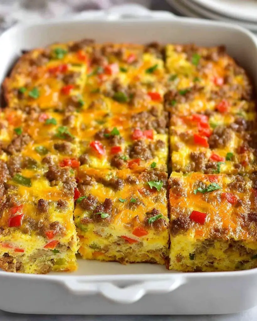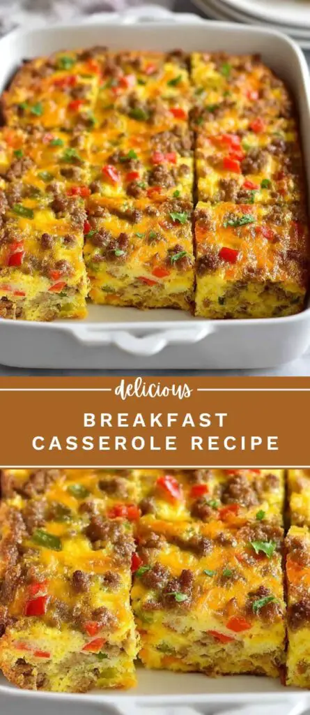 Hearty breakfast casserole made with eggs, sausage, cheese, and vegetables baked to perfection. This easy make-ahead recipe is perfect for brunch, holidays, meal prep, or feeding a crowd with a warm and comforting breakfast dish.