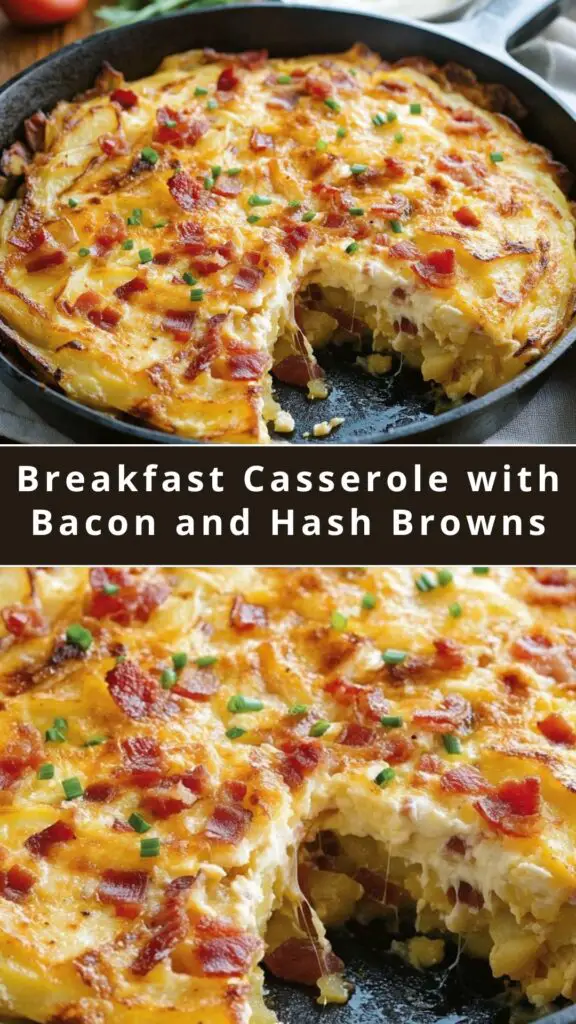 This Breakfast Casserole with Bacon and Hash Browns is a savory and satisfying dish that’s perfect for breakfast, brunch, or even a hearty dinner. Combining crispy hash browns, savory bacon, eggs, and melted mozzarella cheese, this casserole is packed with flavor and easy to make. It’s an ideal recipe for busy mornings, family gatherings, or meal prep, offering a comforting and filling meal that everyone will love. Whether you enjoy it with avocado, diced tomatoes, or fresh herbs, this breakfast casserole can be customized to your tastes. Make it ahead of time, freeze leftovers, or serve it fresh from the oven for a cozy, crowd-pleasing breakfast!