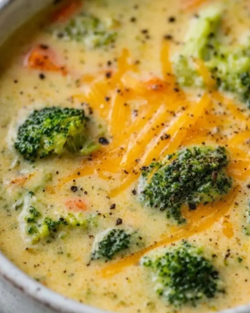 Creamy Broccoli Cheese Soup made with fresh broccoli, carrots, potatoes, and sharp cheddar for a rich and comforting flavor. This easy homemade soup recipe is perfect for cold days and ready in under an hour. A smooth, cheesy broccoli soup that’s hearty, family-friendly, and made with simple ingredients like milk, butter, and vegetable broth. Ideal for lunch or dinner with bread or crackers.