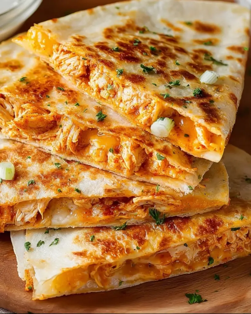 Easy Buffalo Chicken Quesadillas recipe with shredded chicken, spicy buffalo sauce, and melted Mexican cheese. Perfect for quick weeknight dinners, game-day snacks, or a cheesy, flavorful meal. Serve with ranch dressing for dipping.