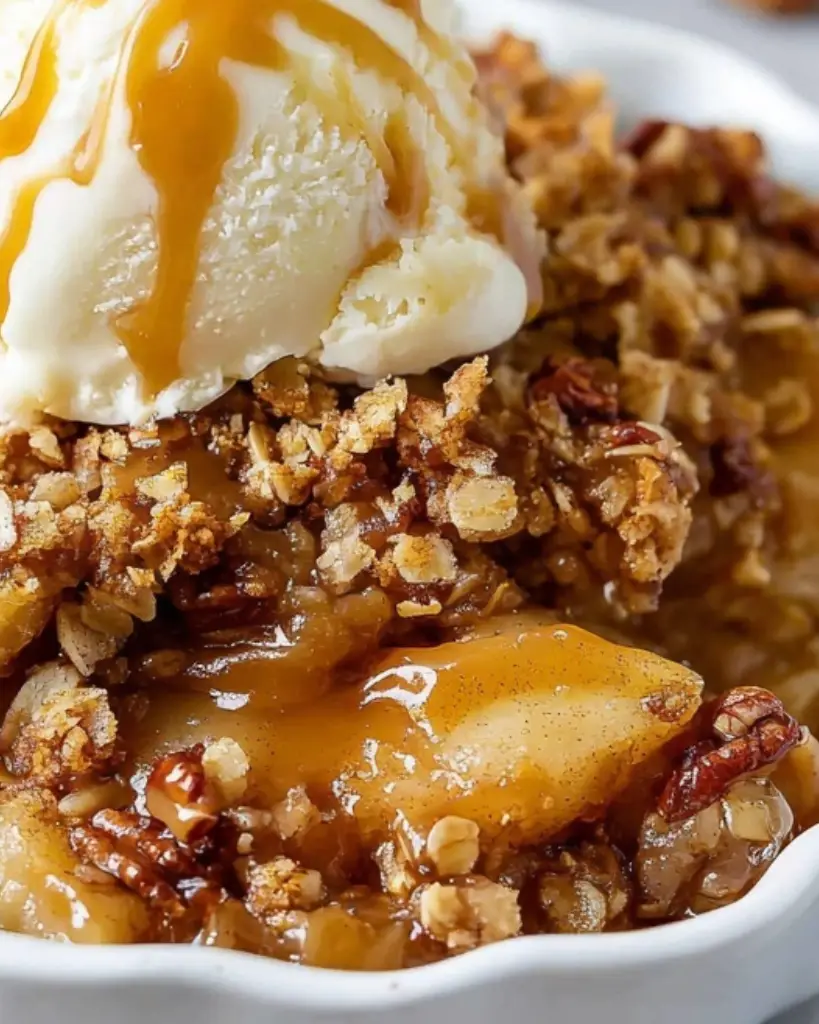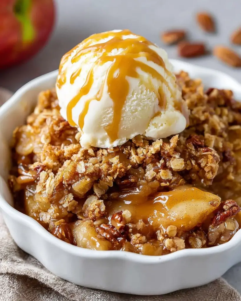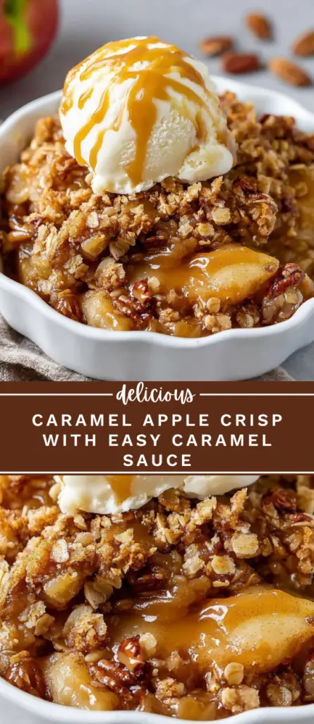 This caramel apple crisp is a classic baked dessert made with tender apples, gluten free oats, brown sugar, and a buttery crumb topping. Finished with a homemade caramel sauce, it’s a popular fall dessert recipe for holidays, family gatherings, and easy oven-baked sweets. Simple to prepare and naturally comforting, this apple crisp pairs perfectly with ice cream and works well as a make-ahead dessert.