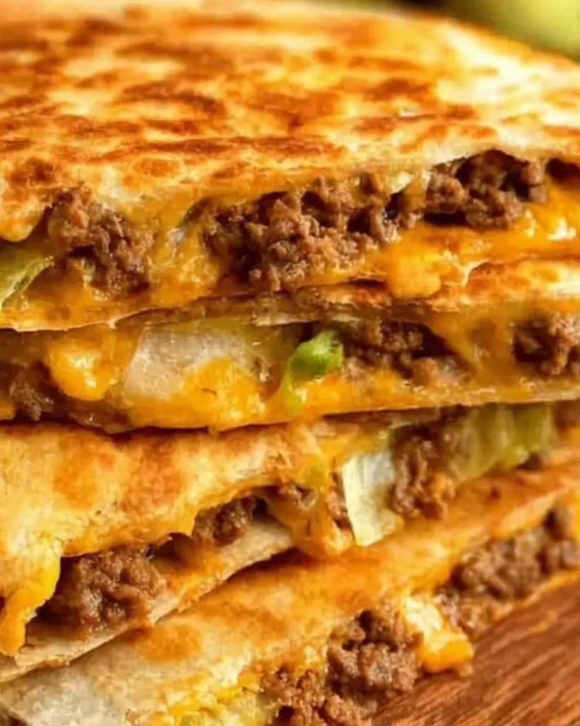 These Cheeseburger Quesadillas combine seasoned ground beef, melted cheddar, tortillas, and classic burger toppings for a quick and easy family dinner. This simple recipe delivers all the flavors of a cheeseburger in a crispy, cheesy quesadilla that’s perfect for weeknights, meal prep, and kid-friendly meals. Serve with homemade special sauce for a restaurant-style twist and a fast, crowd-pleasing option for busy nights.