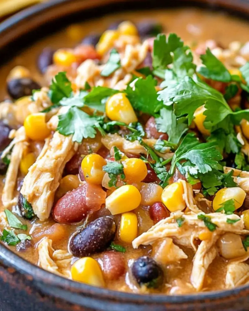 This slow cooker chicken cream cheese chili is a rich and creamy dish packed with tender shredded chicken, black and white beans, sweet corn, and a blend of spices. With minimal prep time, this hearty chili comes together effortlessly in the crockpot, making it a great option for busy weeknights. Serve it over baked potatoes, rice, or with tortilla chips for a comforting meal the whole family will love.