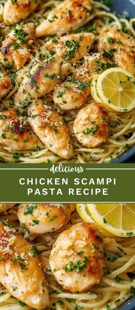 This Chicken Scampi Pasta recipe brings together tender chicken, garlic butter sauce, and lemon-infused pasta for a restaurant-quality meal at home. Made with simple ingredients like spaghetti, white wine, fresh parsley, and Parmesan, this dish is perfect for a quick weeknight dinner or a special occasion. The combination of zesty citrus, rich butter, and flavorful seasonings creates a balanced and delicious pasta dish. Serve with a side of garlic bread or a fresh salad for a complete meal. Whether you’re looking for a comforting classic or an easy recipe with bold flavors, this chicken pasta dish is a must-try.
