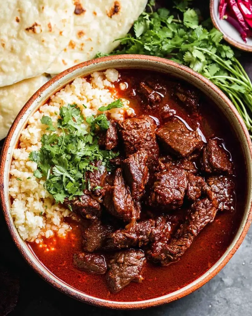 Rich and authentic Chile Colorado made with tender beef simmered in a smoky red chile sauce. This traditional Mexican recipe uses dried ancho and guajillo peppers blended with spices for bold flavor. Perfect served with warm tortillas, rice, and beans, this hearty beef stew is a family favorite for weeknight dinners or festive gatherings.