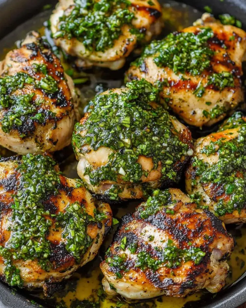 Juicy, flavorful chicken thighs marinated in fresh chimichurri sauce and grilled or pan-seared to perfection. This bold and vibrant dish comes together easily for a delicious weeknight dinner or a backyard cookout.