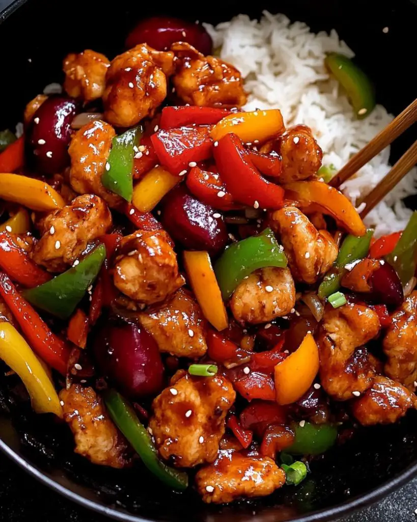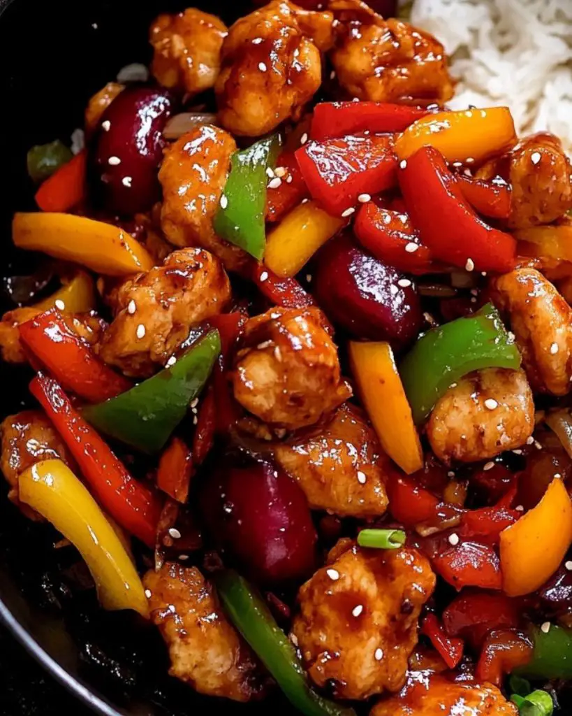 This bold and colorful chicken stir fry combines crispy chicken pieces with juicy plums, bell peppers, and a sticky sweet-and-tangy sauce. It’s a quick and satisfying meal that balances savory, fruity, and spicy flavors—all made in one pan.