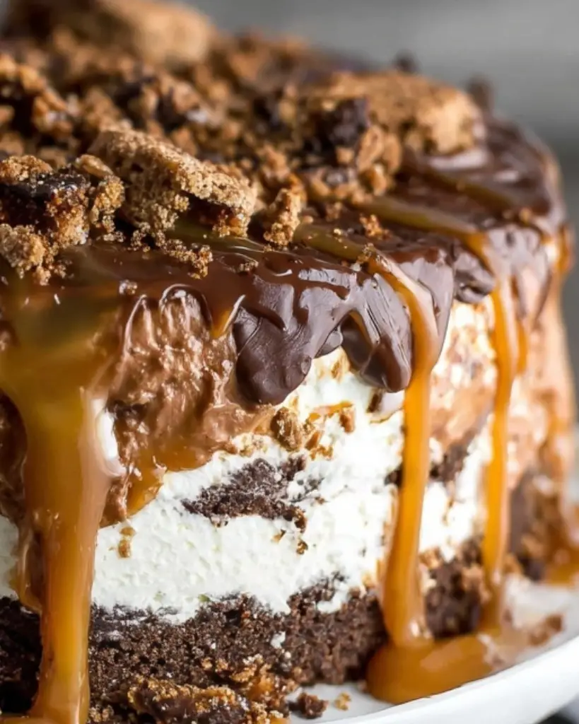 Chocolate Caramel Homemade Ice Cream Cake is a layered frozen dessert made with vanilla ice cream, rich chocolate ganache, buttery cookie crust, and smooth salted caramel sauce. This no-bake ice cream cake features crunchy chocolate graham cracker crumbs, creamy homemade caramel, and a glossy chocolate topping for a bakery-style finish. Perfect for birthdays, summer parties, and special occasions, this make-ahead dessert recipe can be prepared in advance and stored in the freezer until ready to serve. With layers of creamy ice cream, chocolate cookie crust, and salted caramel drizzle, this homemade ice cream cake delivers classic chocolate caramel flavor and impressive presentation without complicated techniques.