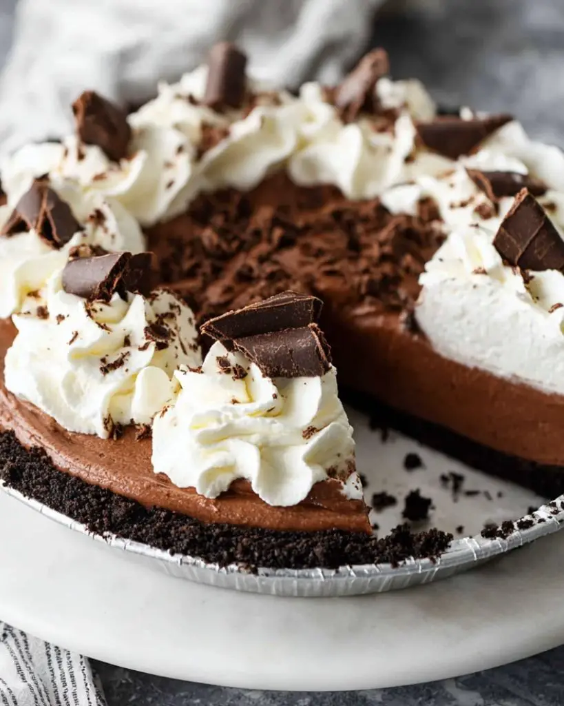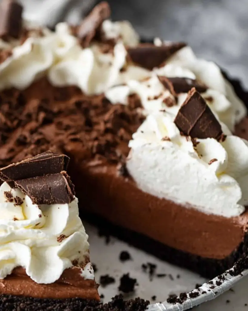 Rich and creamy Chocolate Cream Pie made with a homemade Oreo cookie crust, smooth chocolate pudding filling, and fluffy whipped cream topping. This classic dessert is perfect for holidays, family gatherings, or special occasions. Easy to prepare ahead, this pie recipe combines a crunchy base, decadent chocolate layers, and a light finish for a dessert that always impresses.