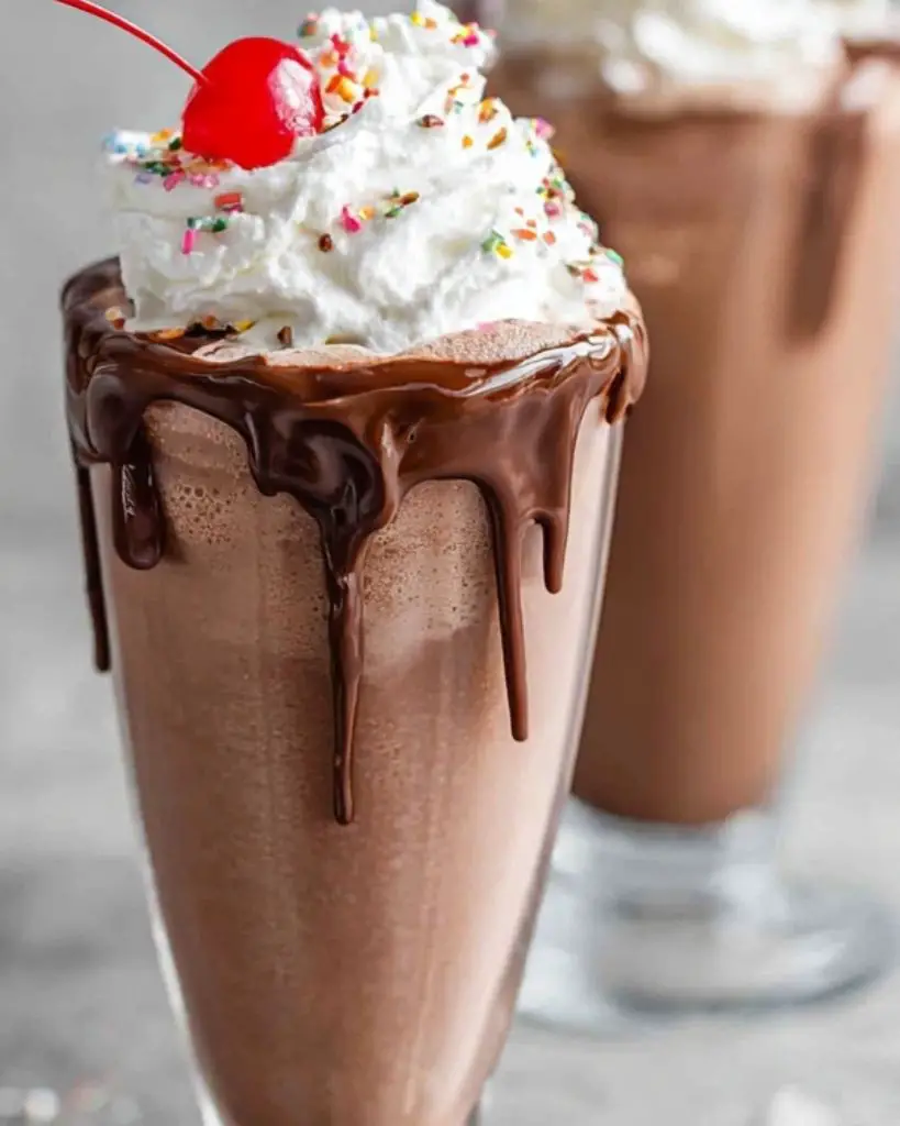 - Add a drizzle of chocolate syrup inside the glass before pouring the shake.