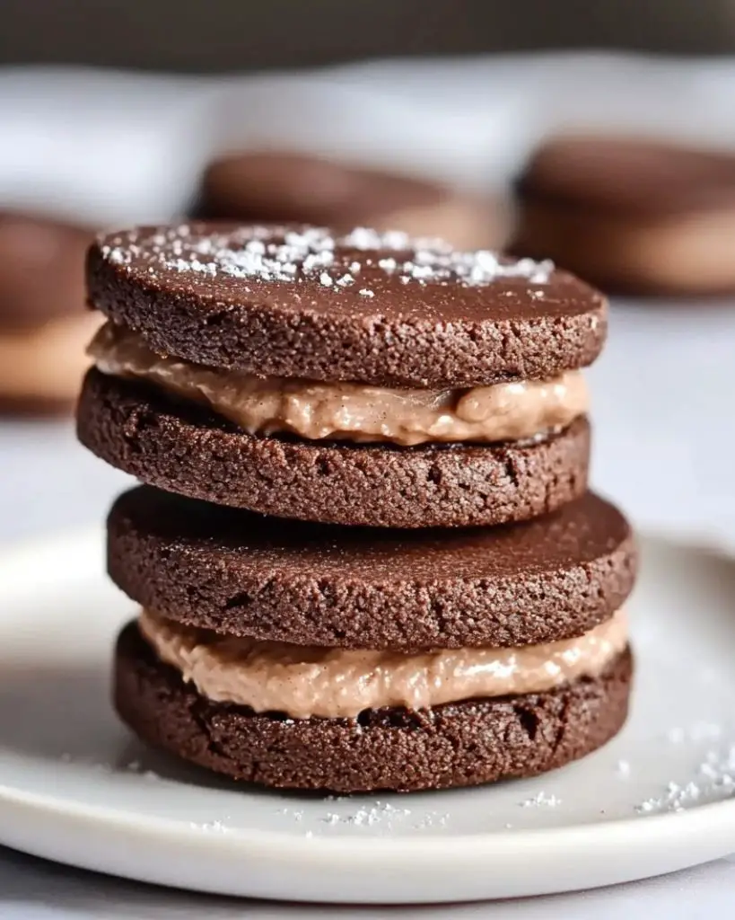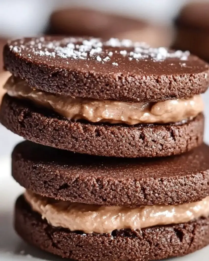 Rich chocolate sandwich cookies filled with whipped ganache make a perfect dessert for holidays, cookie boxes, or special occasions. These homemade cookies feature crisp chocolate shortbread and a creamy chocolate filling, ideal for chocolate lovers and easy to prepare ahead. Great for Christmas baking, edible gifts, or party trays.