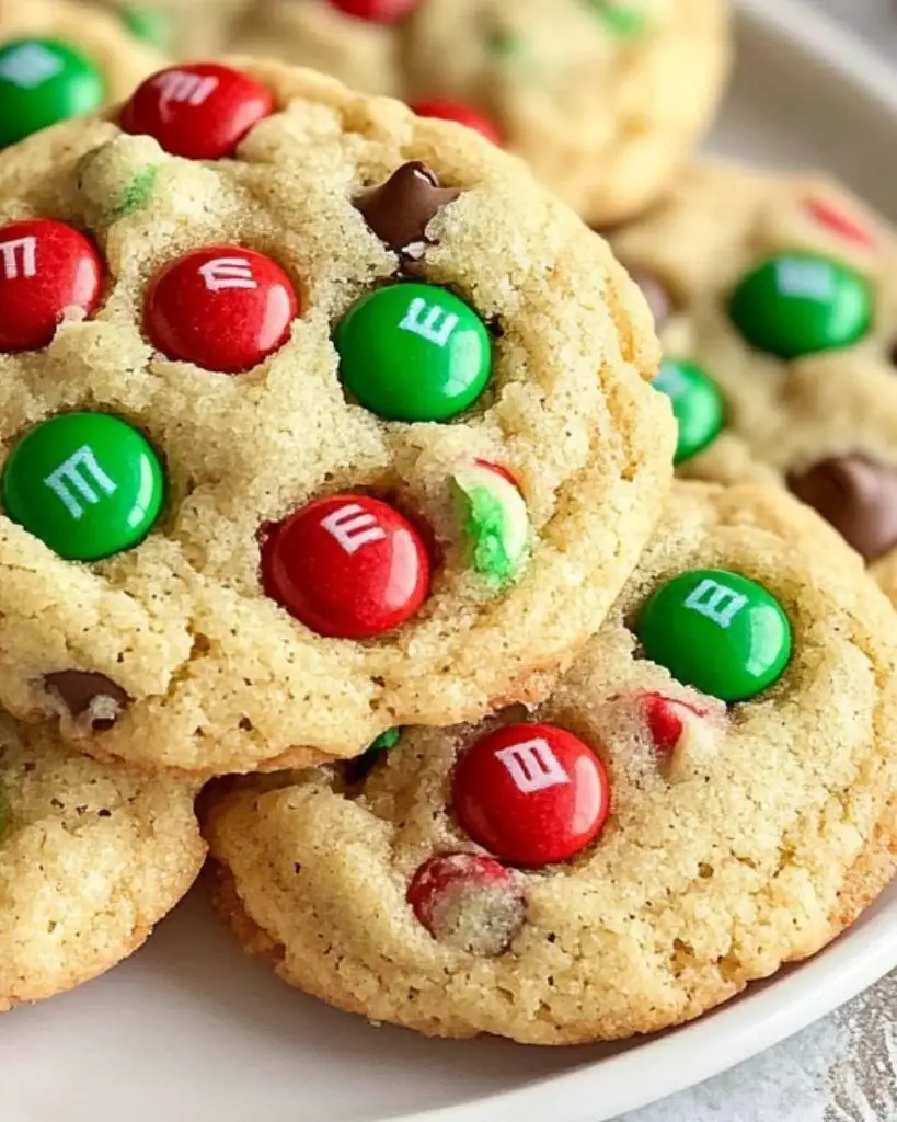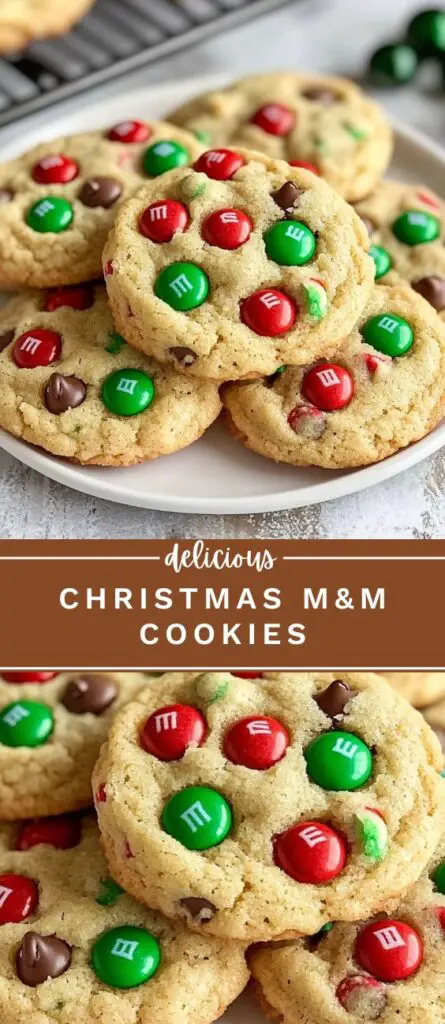 Christmas M&M cookies made with red and green M&Ms, chocolate chips, and a soft, chewy vanilla cookie base. Perfect for holiday baking, cookie swaps, Christmas parties, and gifting. Easy recipe with festive colors and classic ingredients kids and adults love.