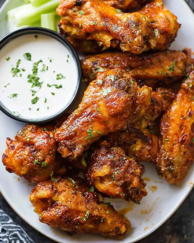Crispy baked chicken wings coated in a flavorful seasoning blend and cooked to golden perfection in the oven. Tossed in sweet and spicy Buffalo sauce or your favorite glaze, these wings are perfect for game day, parties, or weeknight dinners.
