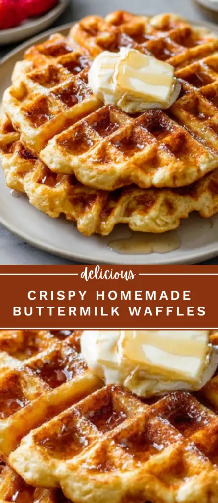 These crispy homemade buttermilk waffles are golden on the outside and light and fluffy on the inside, made with simple pantry ingredients and rich brown butter for extra flavor. This easy waffle recipe uses cornstarch for a perfectly crisp texture and buttermilk for a tender crumb. Ready in under 30 minutes, these homemade waffles are perfect for breakfast or brunch and pair beautifully with maple syrup, fresh fruit, or whipped cream. If you’re looking for a classic waffle recipe with a crispy exterior and soft center, this from-scratch buttermilk waffle recipe delivers consistent, bakery-style results every time.