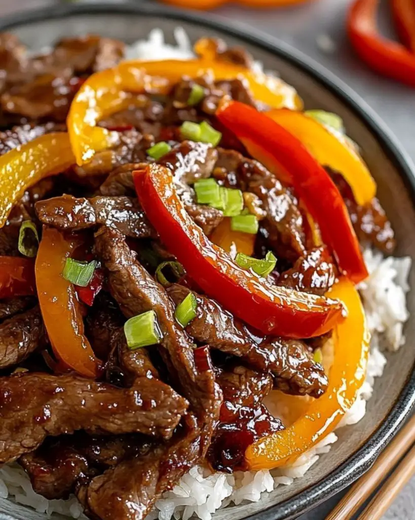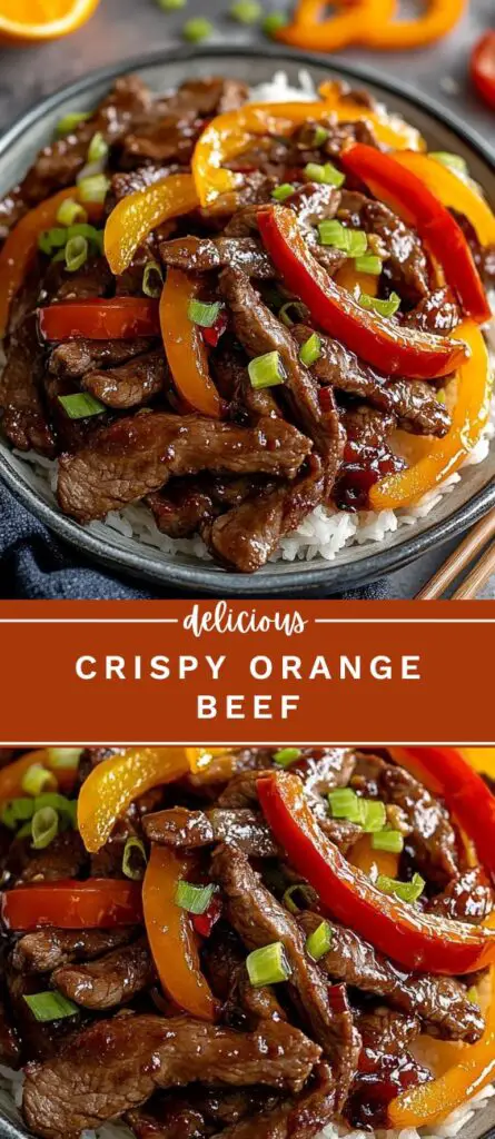 This takeout-style crispy orange beef is sweet, tangy, and packed with flavor. Thin strips of beef are fried until golden and crunchy, then tossed in a glossy orange sauce with peppers and onions. Ready in under 30 minutes!