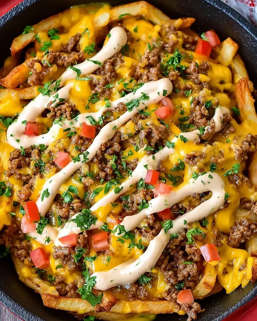 - Drain the beef well before adding it to the fries to keep them crisp.