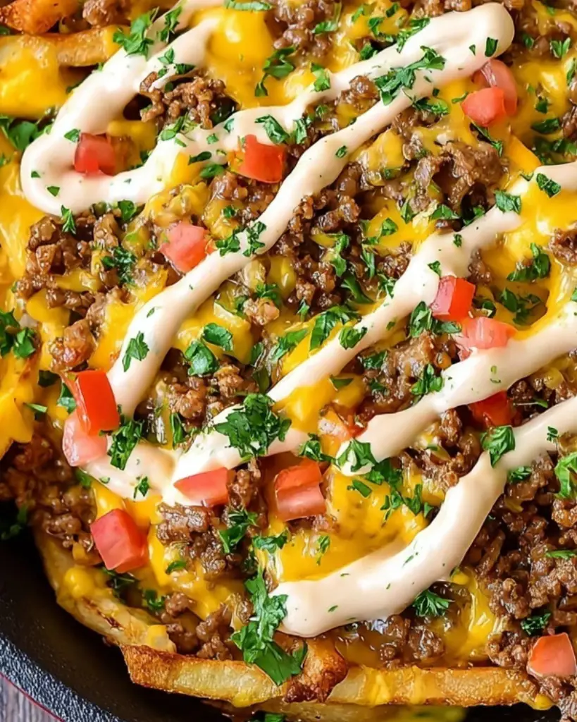 These crock pot cheeseburger fries are loaded with juicy seasoned beef, melty cheddar cheese, and a classic burger-style special sauce. An easy comfort food recipe that’s perfect for game day, casual dinners, or feeding a crowd.