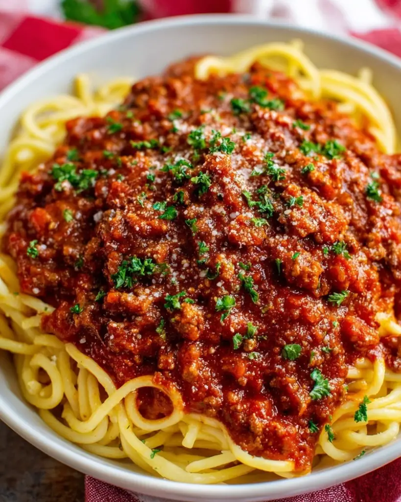 This crock pot spaghetti sauce is rich, hearty, and full of classic Italian flavors. Made with ground beef, tomatoes, garlic, and dried herbs, it simmers low and slow for a thick, flavorful sauce that’s perfect for pasta nights and easy meal prep.