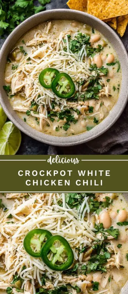 This CrockPot White Chicken Chili is a creamy, hearty slow cooker recipe with tender shredded chicken, northern beans, and mild green chiles. Perfect for easy weeknight dinners, meal prep, or cozy family meals, it features a flavorful blend of cumin, garlic, and oregano. Serve with toppings like cheese, cilantro, lime, and tortilla chips for a filling, high-protein chili that cooks effortlessly in one pot.