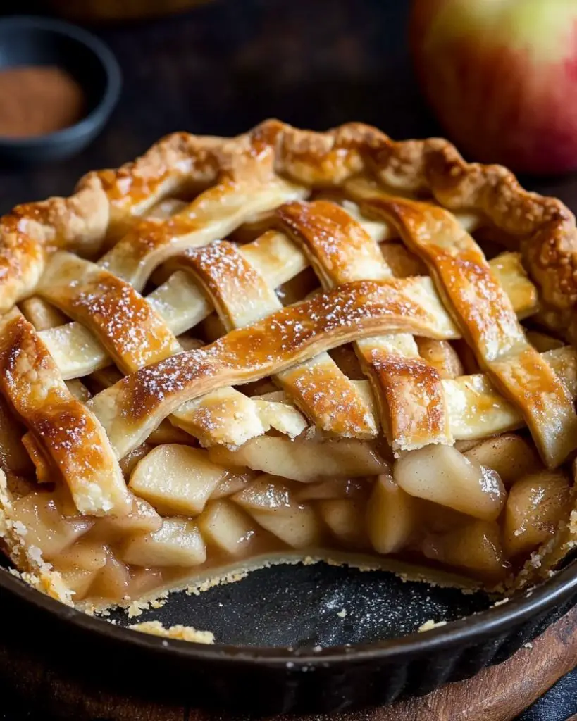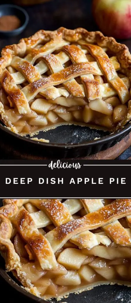 Classic Deep Dish Apple Pie recipe with a flaky homemade crust and spiced apple filling. This easy apple pie combines tart and sweet apples with cinnamon and vanilla for a perfectly balanced dessert. Perfect for holiday baking, family gatherings, or cozy autumn treats. Step-by-step instructions for a bakery-style lattice crust and tips for a thick, flavorful filling.