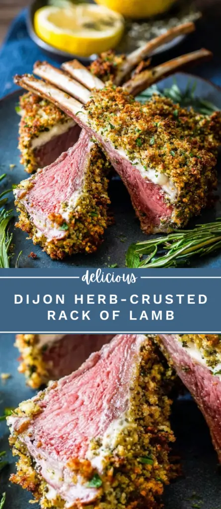 Dijon herb crusted rack of lamb baked in the oven with panko breadcrumbs, fresh rosemary, parsley, mint, and lemon zest. This oven-roasted rack of lamb recipe delivers tender, juicy meat with a golden mustard herb crust, perfect for Easter dinner, holiday meals, or special occasions. Easy lamb recipe with simple ingredients, ideal for an elegant main course served with roasted vegetables or potatoes.