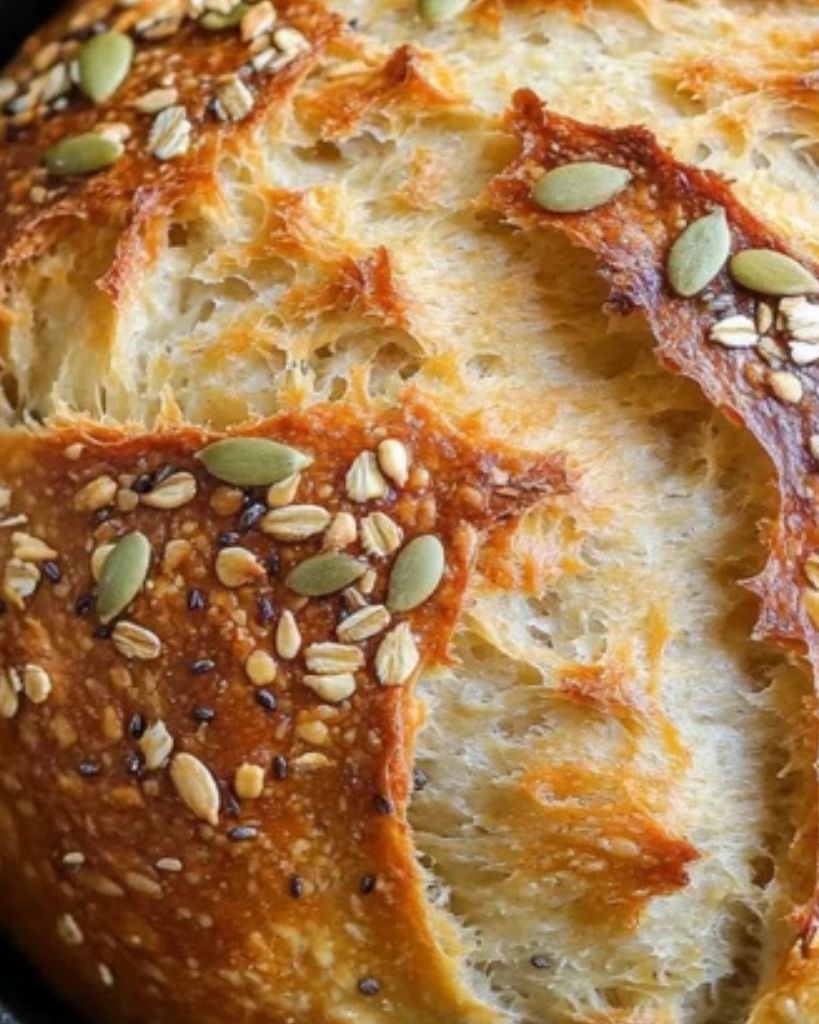 Make homemade Dutch oven bread with a crispy crust and soft, airy center using simple ingredients. This no-knead recipe is packed with a blend of five nutritious seeds, creating a flavorful and hearty loaf. Perfect for sandwiches, soups, or as a side dish, this easy bread recipe requires minimal effort while delivering bakery-quality results.