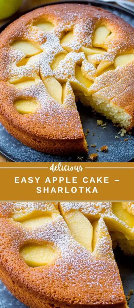 Easy Apple Cake (Sharlotka) is a simple, flavorful dessert made with fresh Granny Smith apples, eggs, and basic pantry ingredients. This Russian-style cake features a light, airy texture and a golden-brown crust. Perfect for any occasion, this cake is quick to make and requires minimal preparation. It’s a great choice for baking beginners and experienced home bakers alike. Serve it with a dusting of powdered sugar for a delicious finish. This easy apple cake recipe is sure to become a family favorite.