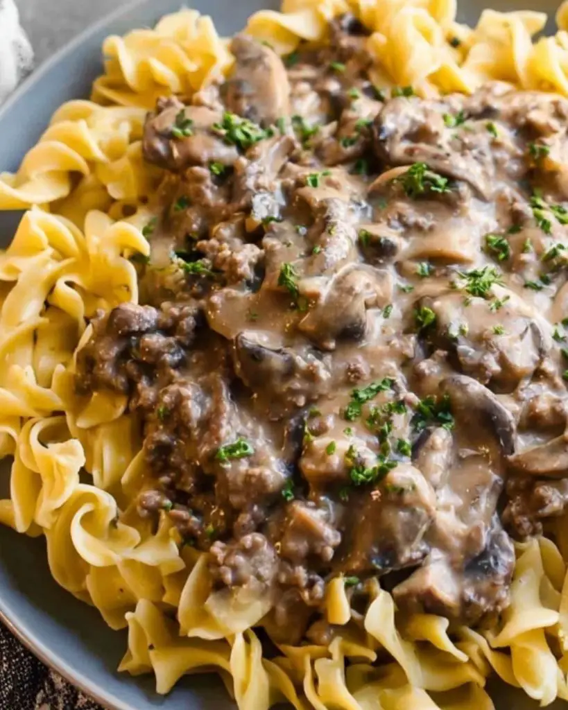 This easy beef stroganoff with ground beef is creamy, hearty, and ready in under 30 minutes. Made with mushrooms, onion, and a rich sour cream sauce, it’s perfect over egg noodles or rice for a quick family dinner.