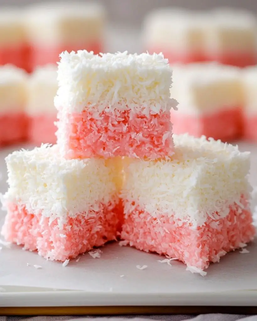 Coconut Ice is a simple, no-bake treat made with sweetened condensed milk, icing sugar, and desiccated coconut. This nostalgic layered candy features a soft, chewy texture and a signature pink-and-white finish—perfect for holidays, bake sales, or homemade gift boxes.