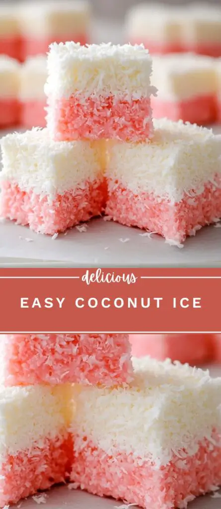 Easy coconut ice recipe made with condensed milk, icing sugar, and desiccated coconut. This no-bake sweet is perfect for holidays, homemade gifts, bake sales, or party treats. Features classic pink and white layers with a chewy texture. Simple to prepare and ready in just a few hours.