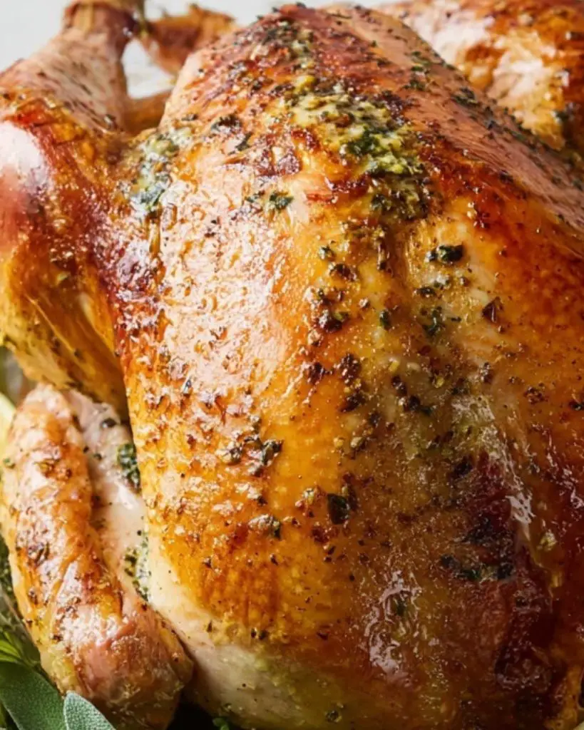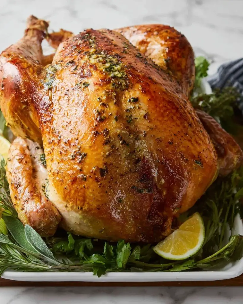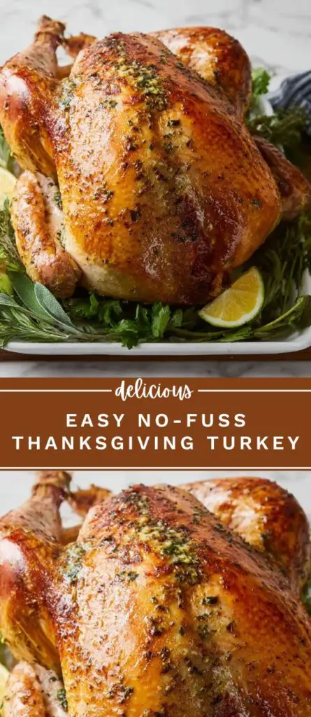 Make a juicy and tender Thanksgiving turkey with this easy no-fuss recipe. Roasted with garlic herb butter, fresh rosemary, thyme, and sage, this turkey turns out golden and flavorful every time. Perfect for holiday dinners, this simple method includes tips for cooking times, carving, and making homemade gravy from pan drippings.