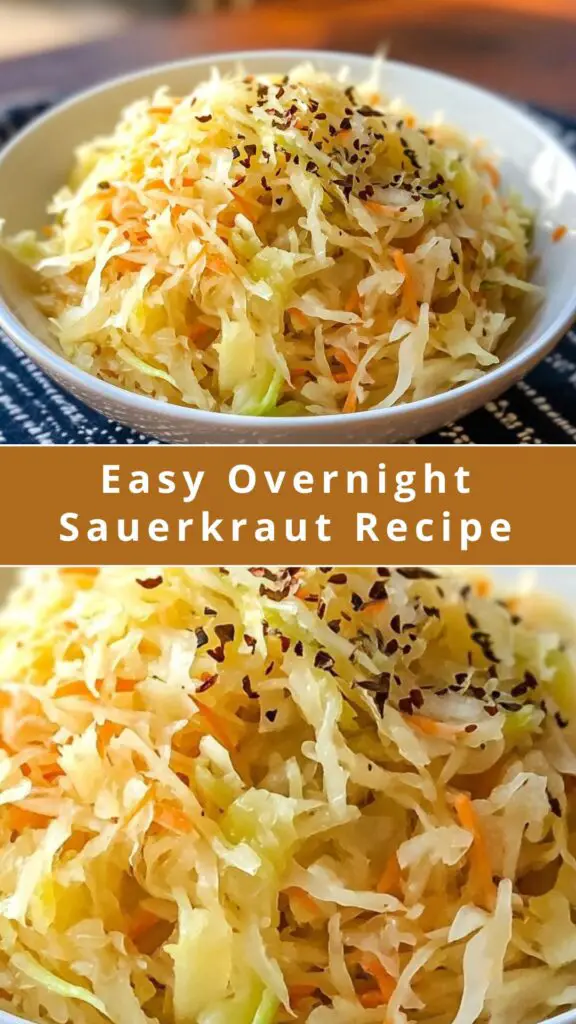 Looking for a simple and flavorful homemade sauerkraut recipe? This Easy Overnight Sauerkraut Recipe is your go-to for making tangy, probiotic-rich sauerkraut right at home! Made with fresh cabbage, carrots, garlic, and a flavorful marinade, this recipe requires minimal ingredients and just 24 hours in the fridge to create a perfect side dish or topping. Whether you enjoy sauerkraut with sausages, on sandwiches, or as a healthy snack, this easy recipe will bring a delicious crunch and natural probiotics to your meals. Ideal for those seeking a healthier, homemade alternative to store-bought sauerkraut.