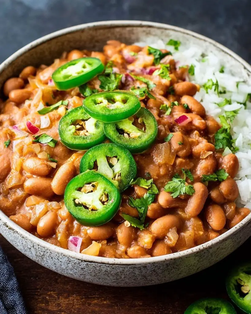 Easy pinto beans recipe with creamy texture, smoky paprika, and cumin. Made with sautéed shallots, garlic, and jalapeño, this flavorful bean dish can be served as a side, in tacos, or as a dip. Quick, versatile, and perfect for weeknight meals.