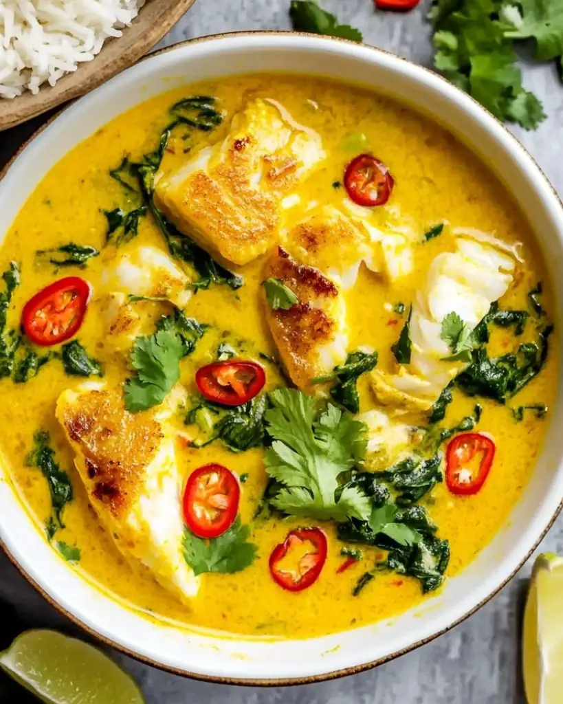 A flavour-packed Thai yellow curry made from scratch with fresh herbs, spices, and flaky white fish. Simmered in a rich coconut-based sauce and served with rice, this simple dish brings warmth and vibrant Thai flavours to your dinner table.