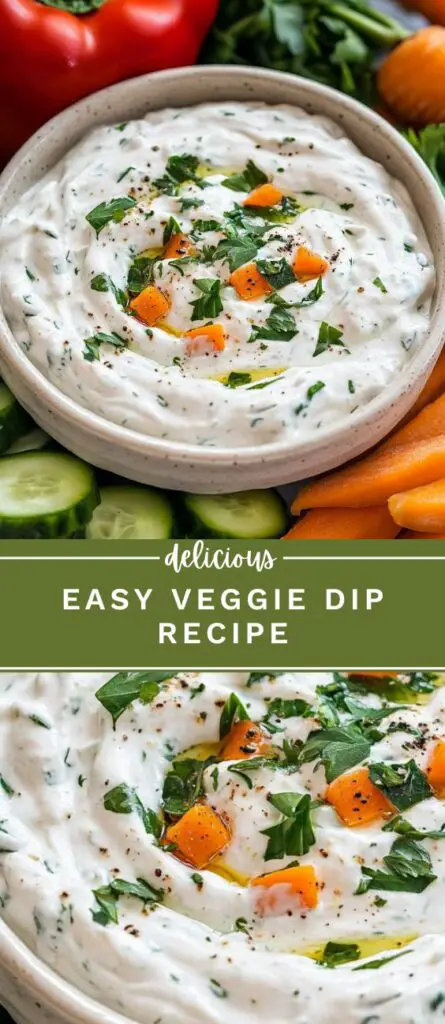 This easy veggie dip recipe is perfect for parties, snacks, and meal prep. Made with mayonnaise, sour cream, fresh herbs, and spices, it’s a creamy vegetable dip that pairs well with carrots, cucumbers, bell peppers, and more. Customize it with Greek yogurt for a lighter version or add a spicy kick with cayenne pepper. Great for game day, potlucks, or healthy snacking, this homemade dip is quick to prepare and packed with flavor. Keep it in the fridge for an easy make-ahead appetizer that everyone will love.