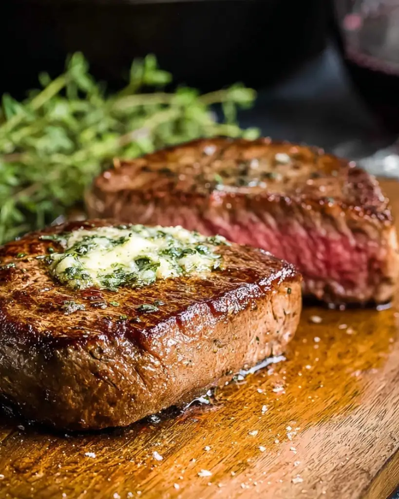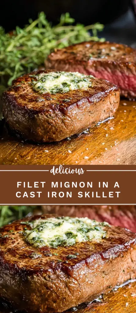 Filet mignon cooked in a cast iron skillet with butter, garlic, and fresh herbs for a perfect pan-seared steak. This easy steak recipe delivers a rich crust and tender center, ideal for steak dinners, special occasions, or home cooking. A popular method for cooking filet mignon on the stovetop, finished with herb butter and flaky sea salt for classic steakhouse flavor.