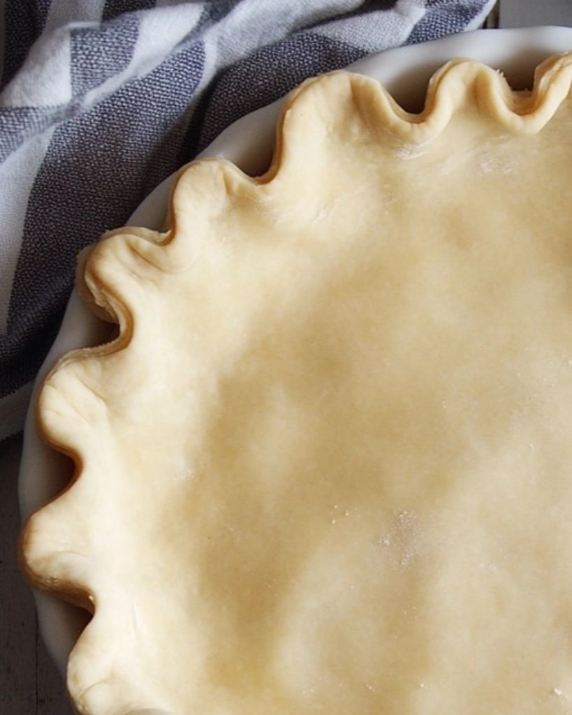- Transfer the dough to your pie dish, pressing it gently into the corners. Fold the edges under for a neat crust and crimp the edges if desired. Dock the bottom of the crust with a fork.