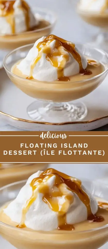 Floating Island Dessert, also known as Île Flottante, is a classic French dessert featuring fluffy poached meringues floating on rich vanilla custard and finished with a golden caramel drizzle. This elegant no-bake dessert is perfect for holidays, dinner parties, and special occasions. With a light texture and a beautiful presentation, Floating Islands offer a balance of sweet, creamy, and airy elements. Make this traditional French recipe at home with simple ingredients like eggs, milk, sugar, and vanilla.