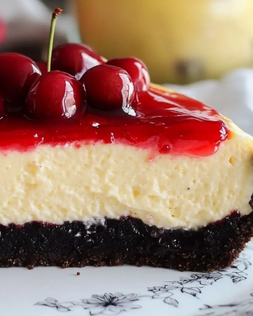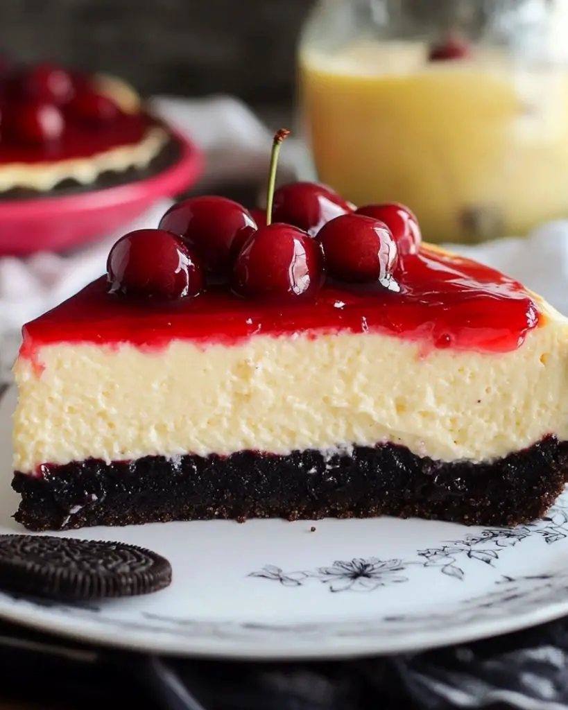 This gluten-free baked cheesecake features a rich, creamy filling with a crisp Oreo crust. Made with simple ingredients like cream cheese, sugar, eggs, and vanilla bean paste, it’s perfect for those seeking a low-carb, gluten-free dessert. The cheesecake is baked in a water bath for a smooth, crack-free texture and topped with cherry pie filling for added sweetness. Ideal for special occasions, holidays, or anytime you need a gluten-free dessert option.