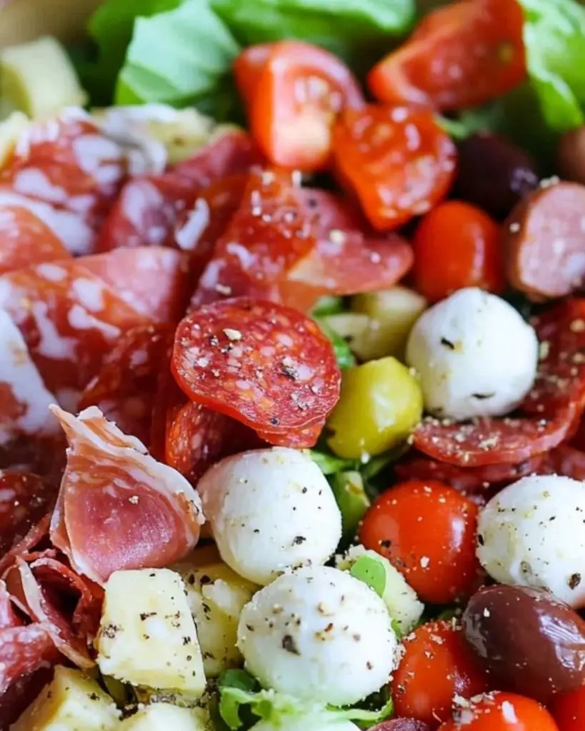 This Grinder Salad is a fresh and flavorful dish made with a variety of deli meats, mozzarella, and vegetables, all tossed in a tangy Italian dressing. With ingredients like salami, pepperoni, prosciutto, and Kalamata olives, this easy salad is perfect for meal prep, a light lunch, or as a side dish for any occasion. It’s customizable with your favorite ingredients and is a great option for gluten-free diets.