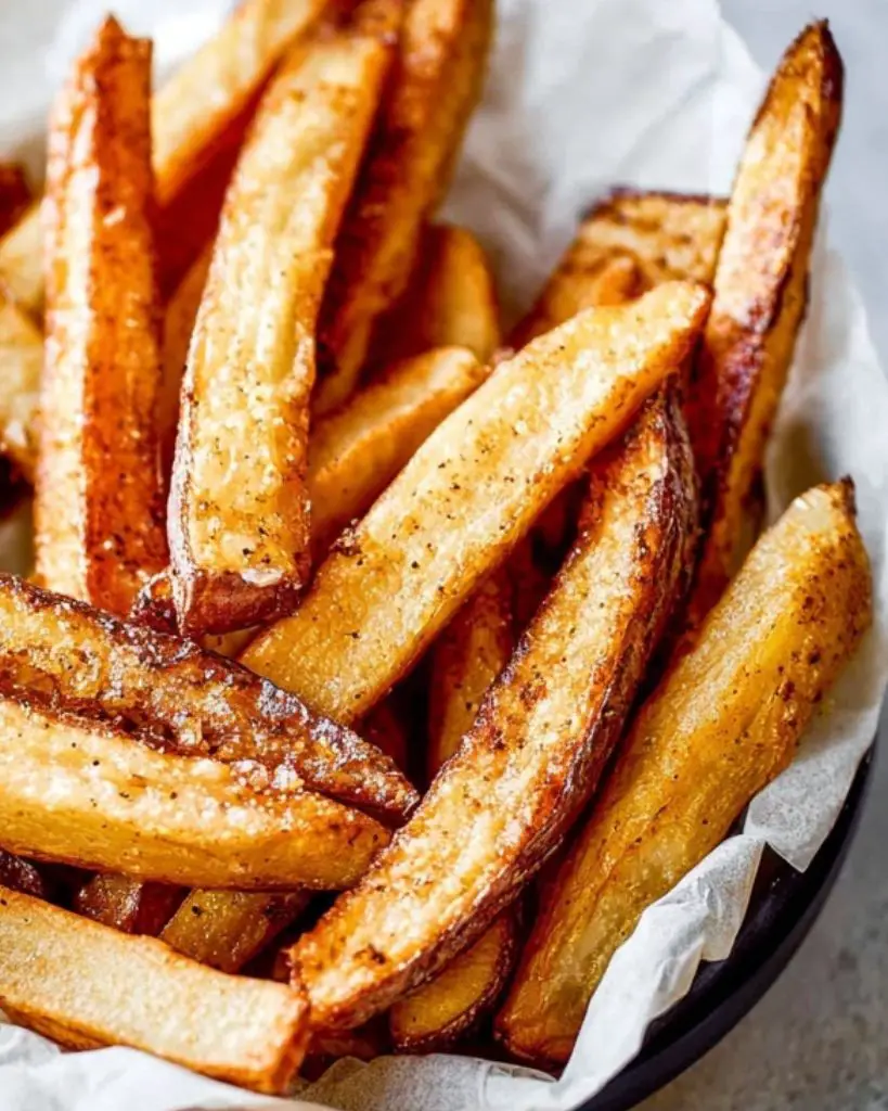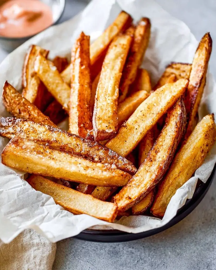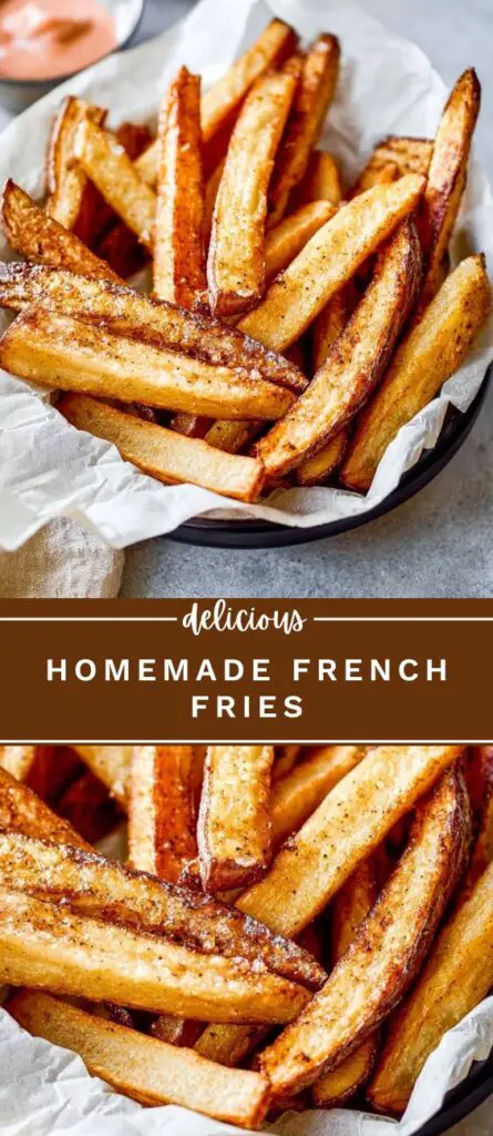 This homemade French fries recipe shows how to make crispy, golden fries using Russet potatoes, either baked or fried to perfection. Soaking the potatoes removes excess starch for extra crunch, while seasoning with salt and pepper enhances flavor. Perfect as a side for burgers, sandwiches, fish and chips, or served with dipping sauces like fry sauce, ranch, or ketchup, these fries bring classic restaurant-quality results to your kitchen.