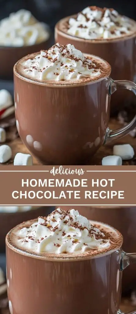 “Indulge in this rich and creamy homemade hot chocolate made with real chocolate, cocoa powder, and milk for the ultimate cozy treat! This easy hot chocolate recipe is perfect for cold winter nights, holiday gatherings, or a comforting drink any time of the year. With just a few simple ingredients, you can make a smooth, velvety, and decadent cup of homemade hot cocoa in minutes. Customize it with whipped cream, marshmallows, or a peppermint twist for extra flavor. Ditch the store-bought mix and enjoy the best homemade hot chocolate from scratch!”
