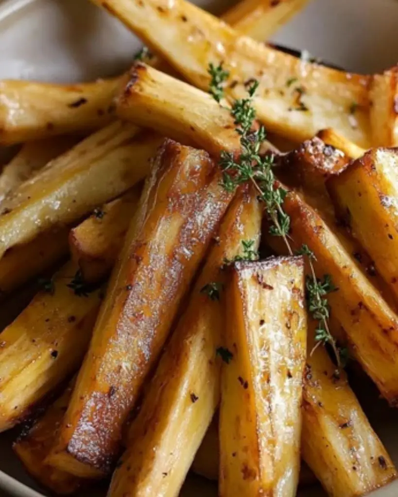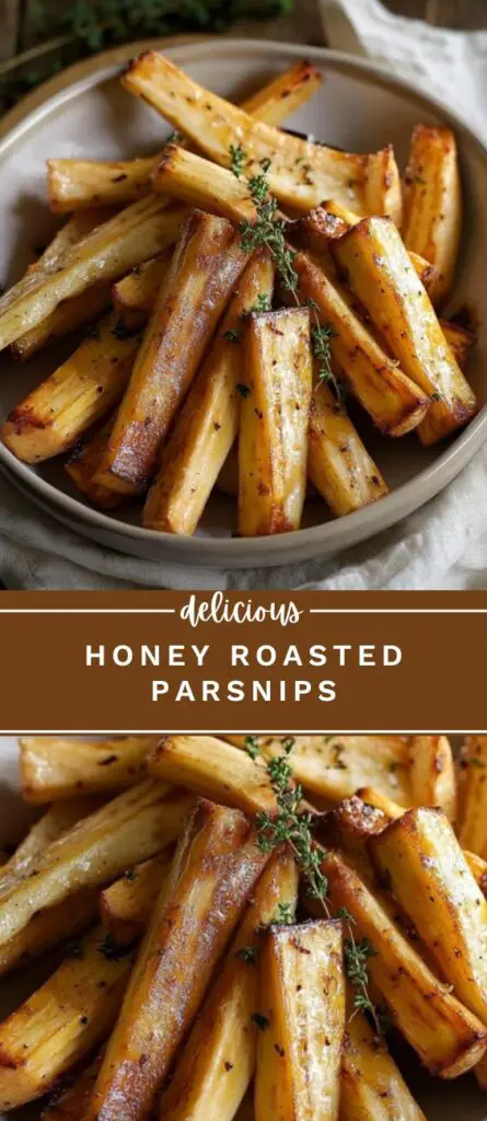 Parsnips rôtis au miel croustillants et dorés, assaisonnés de thym frais. Recette facile et rapide de légumes rôtis sucrés-salés, parfaite en accompagnement de viandes et plats d’hiver. Préparation simple avec des ingrédients naturels pour un goût riche et une texture fondante à l’intérieur.