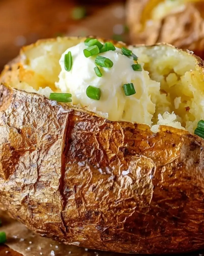Easy baked potato recipe with crispy skin and fluffy interior. Perfectly seasoned with oil and sea salt, this oven-baked potato is ideal as a side dish or base for toppings like cheese, sour cream, and chives. Works with Russet, Yukon Gold, or sweet potatoes for versatile meals.