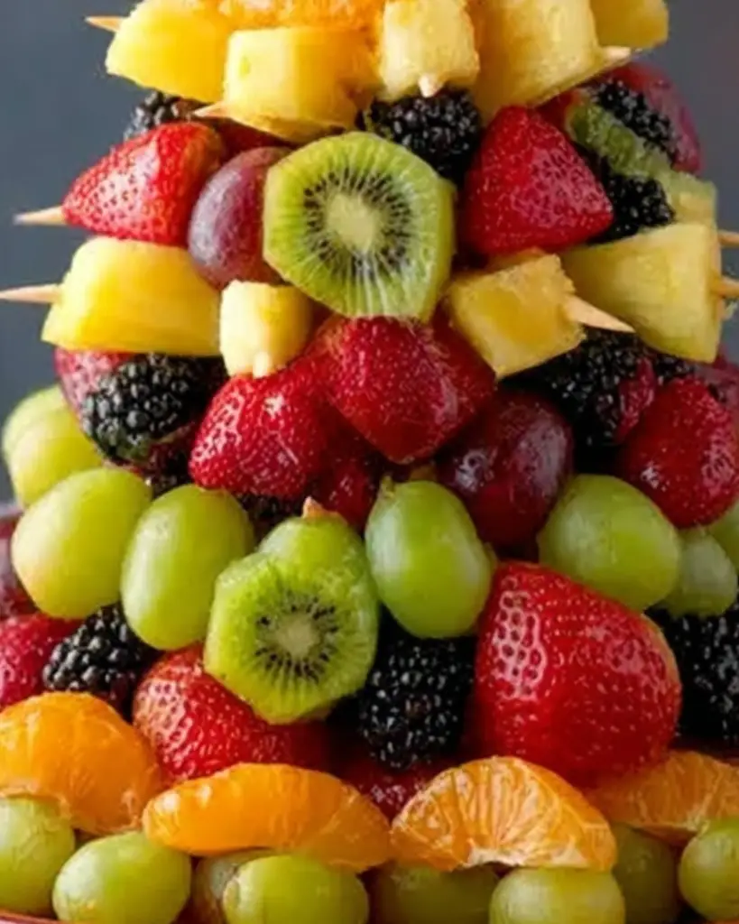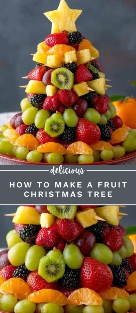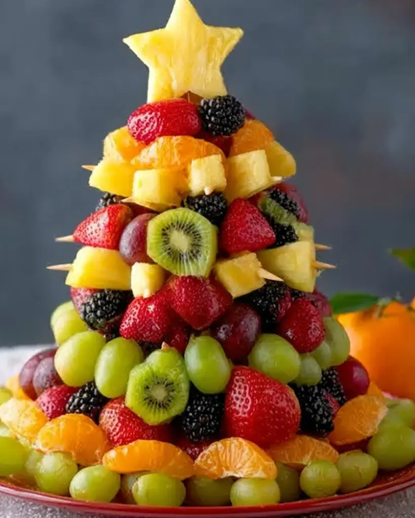 The Fruit Christmas Tree is a vibrant, healthy, and fun holiday centerpiece that doubles as a snack. With layers of colorful fruit arranged on a pineapple base and topped with a star, it’s visually striking, easy to assemble, and perfect for festive gatherings or family celebrations.